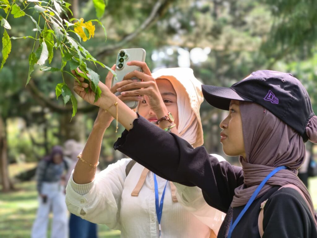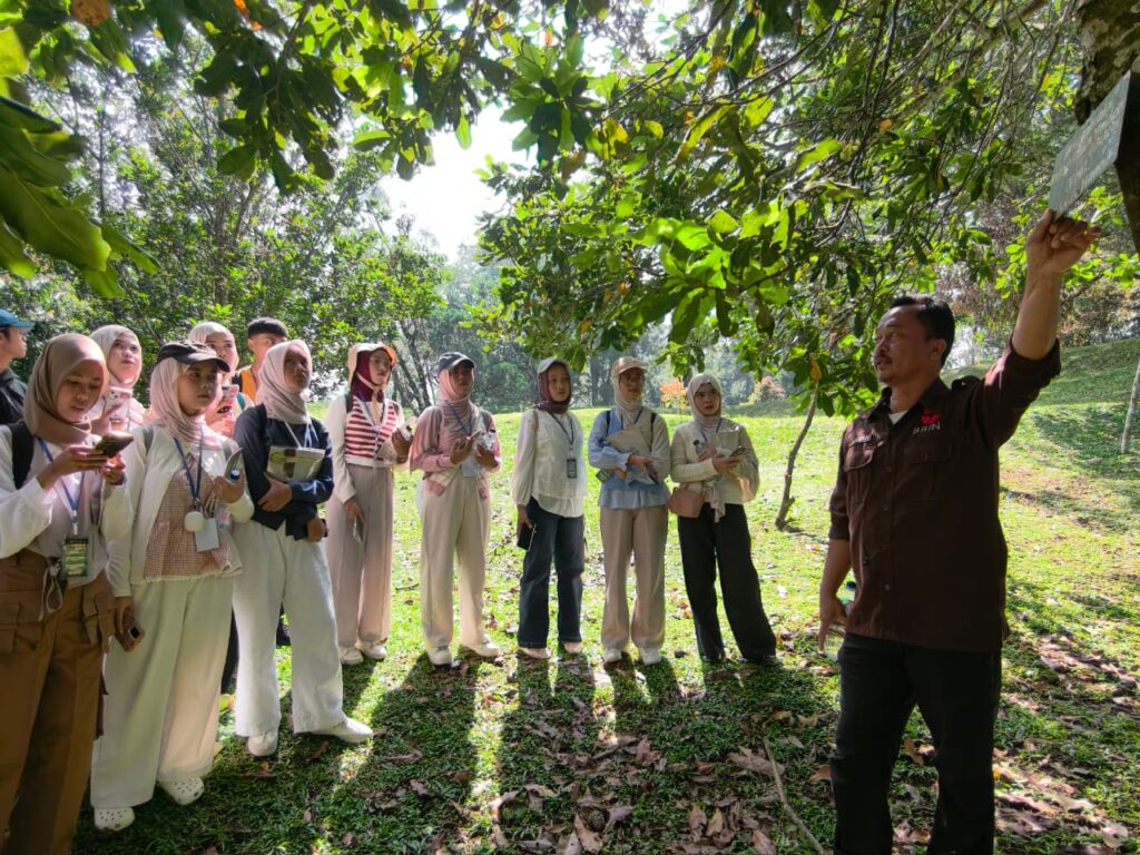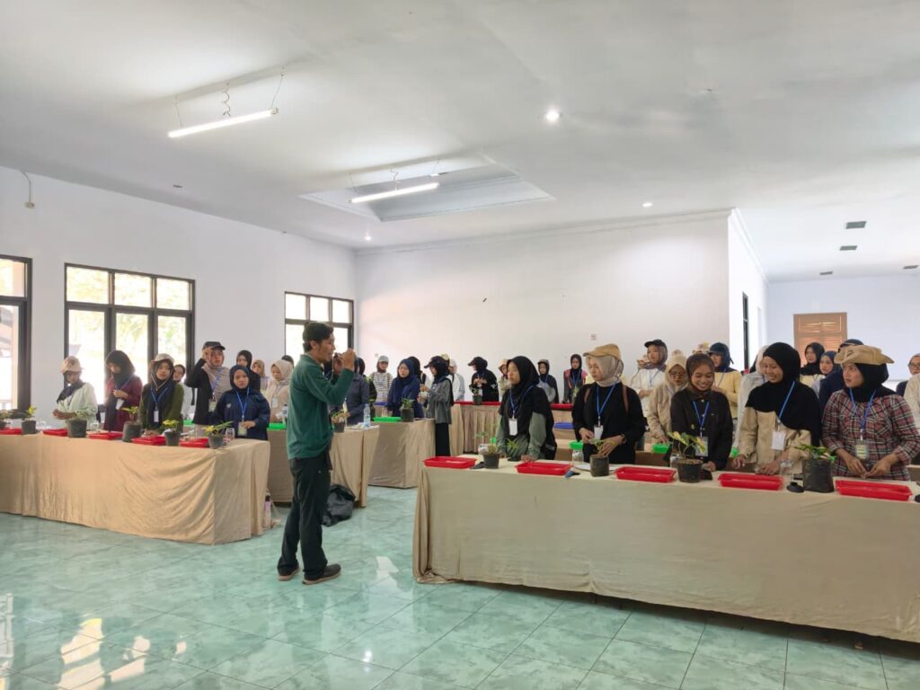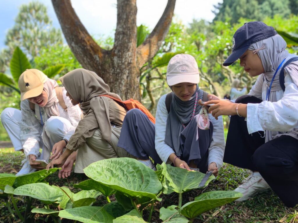 Mahasiswa juga mendapatkan pemahaman mengenai fungsi Kebun Raya sebagai kawasan konservasi ex-situ, yaitu pelestarian keanekaragaman hayati di luar habitat aslinya. Hal ini memberikan wawasan penting tentang upaya menjaga plasma nutfah dan keberlanjutan ekosistem. Kegiatan dilanjutkan dengan sesi edukasi mengenai tanaman seperti Anthurium, teknik kokedama, serta pemanfaatan hidrogel dalam budidaya tanaman. Diskusi interaktif dan perlombaan turut menambah semangat belajar mahasiswa. Pada malam hari, kegiatan kembali diisi dengan diskusi, ulasan kegiatan, serta kreasi seni yang mempererat kebersamaan antar peserta.